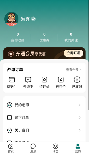 5、点击我的,登录后可查看我的老师、我的订单等功能