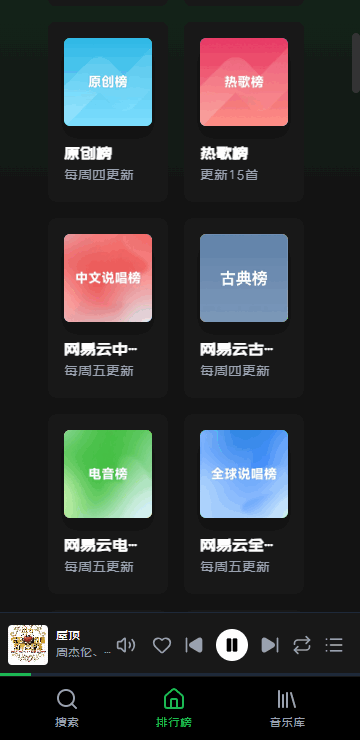 4、点击排行榜还可以查看各大平台的歌曲榜单。