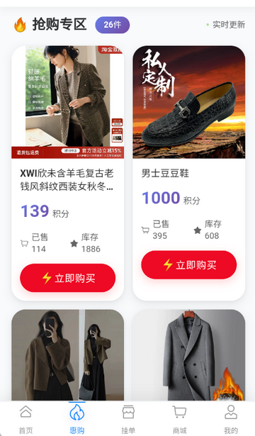 2、进入首页,可选择立即抢购/限时汇购等购买