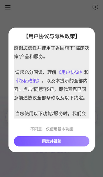1、打开临床决策app,点击同意隐私政策