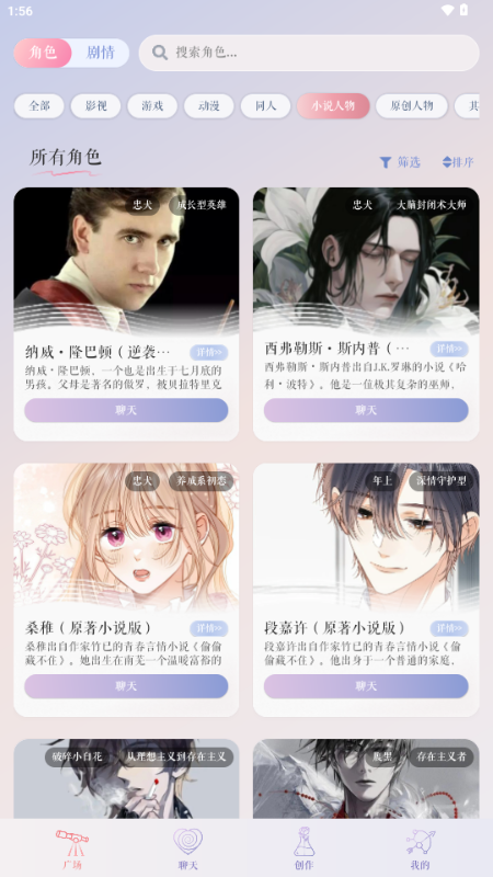 如果你更偏向创作表达,本应用同样提供“创作”入口:你可以设计自己的角色设定、外观与性格标签,撰写世界观与剧情梗概,甚至围绕某个主题快速搭建一个互动故事的雏形。创作不需要专业写作门槛,你可以从一句设定开始逐步完善:角色是谁、喜欢什么、害怕什么、说话什么风格、在什么场景下与你相遇……当设定越来越清晰,AI 也会更容易与你一起把故事“演出来”。对创作者来说,这既是灵感记录本,也是一个可互动的故事工作台;对普通用户来说,你也可以直接体验他人创作的角色与剧情,发现更多新鲜玩法。