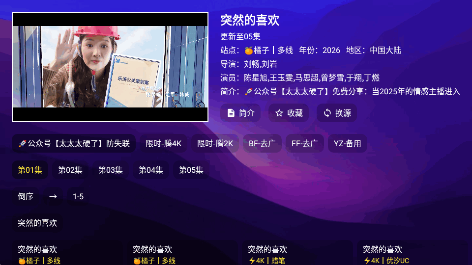 界面极简风格的一款操作方便的手机看剧看视频的工具,XMBOX电视版,此版本是内置播放源的版本,打开后可以快速免费使用,不用手动导源就可以操作,支持多个平台,看剧搜剧找剧非常方便,全网的资源都有。