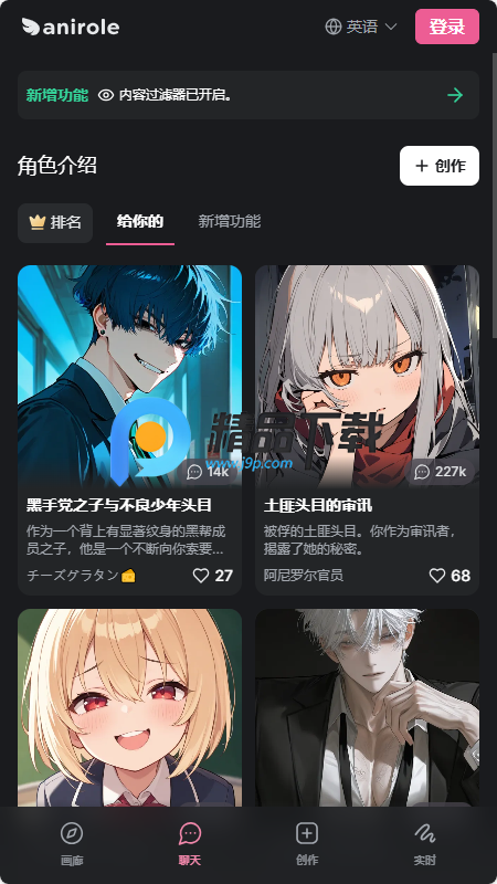 Anirole 是一款新一代娱乐应用,拥有与 AI 角色聊天的功能。