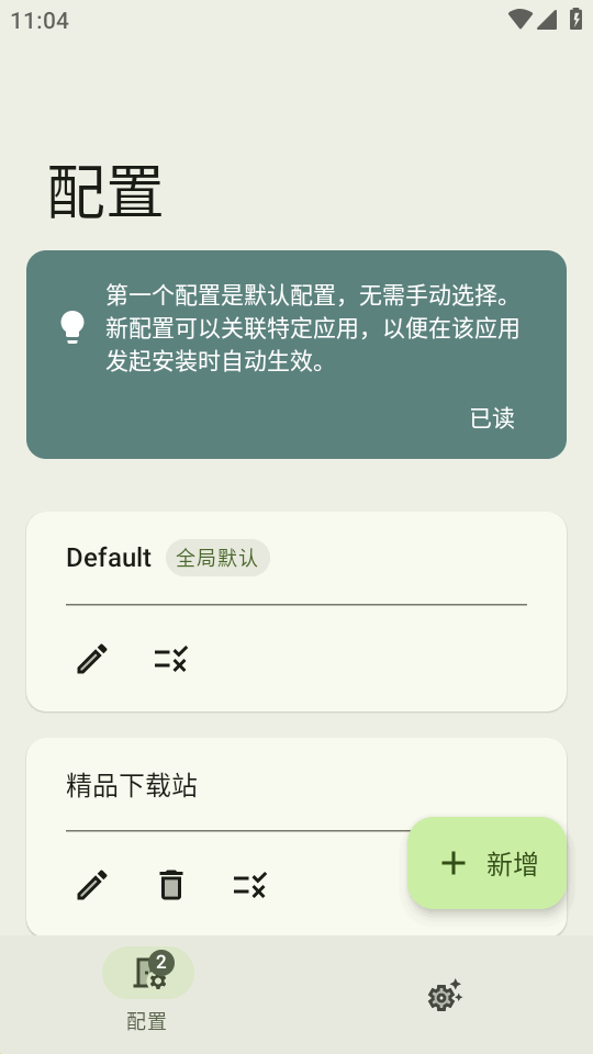 3、第一个配置是默认的,不用手动选择,新加的配置是为了关联特定应用更便捷的安装。