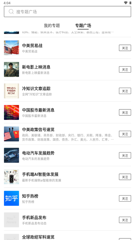 探索其他用户创建的优质专题(如“AI论文速递”“全球气候异常事件”),一键关注,信息不遗漏。