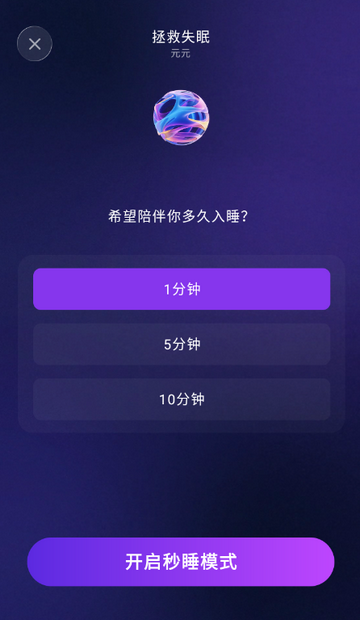 3、主打“1分钟冥想”,适配碎片化时间,无需长时间投入即可实现快速精力回血。