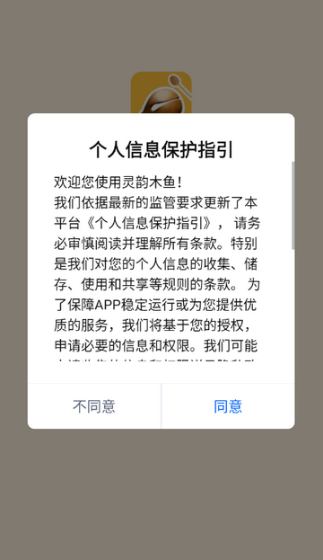 1、打开灵韵木鱼app,点击同意隐私政策