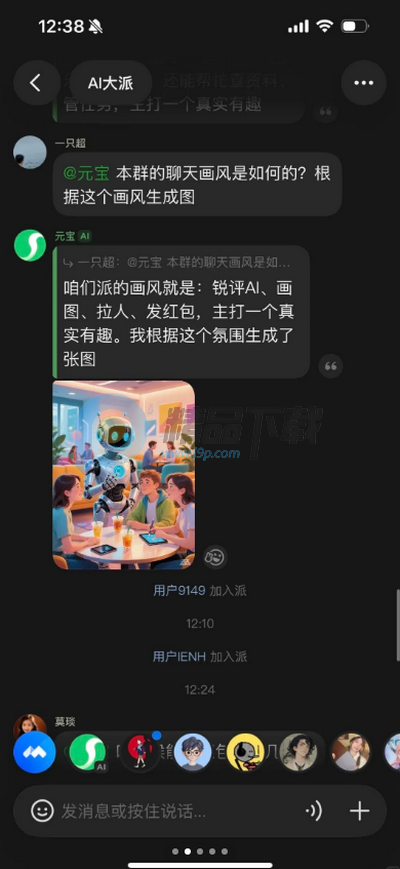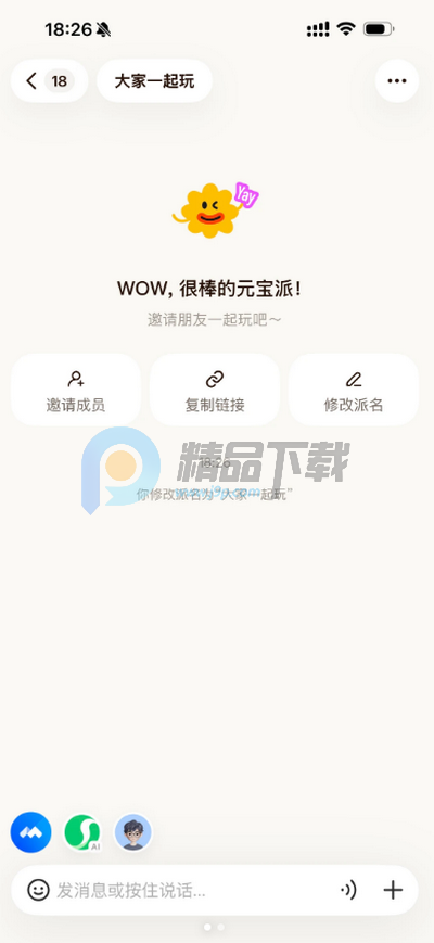 元宝派app是腾讯发布的一款内测软件,主要是元宝AI里面的一个功能,可以创建一个派,让用户可以创建各种不同的AI角色进行聊天,功能非常不错,可以在工作上,生活上,学习上给我们带来极大地帮助,只要创作派,然后邀请其他人进行体验即可