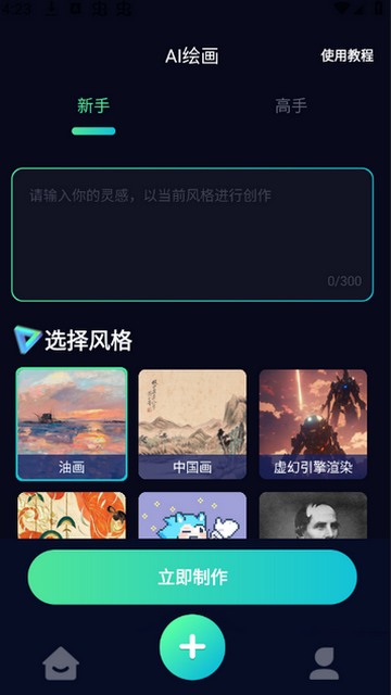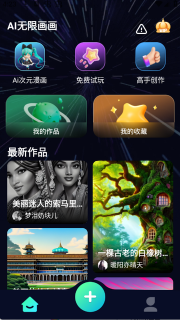 AI无限画画app是由成都笃初诚美网络科技有限公司所创建,它基于强大的AI智能技术,包括颜色、笔画、纹理和光影等方面的技巧和特征,将您的灵感、想法,简单快速的为你呈现出成一副美丽的艺术画作。是需要会员才能使用的。
