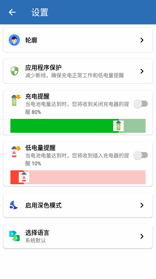 3、在设置页面可以设置充电提醒。