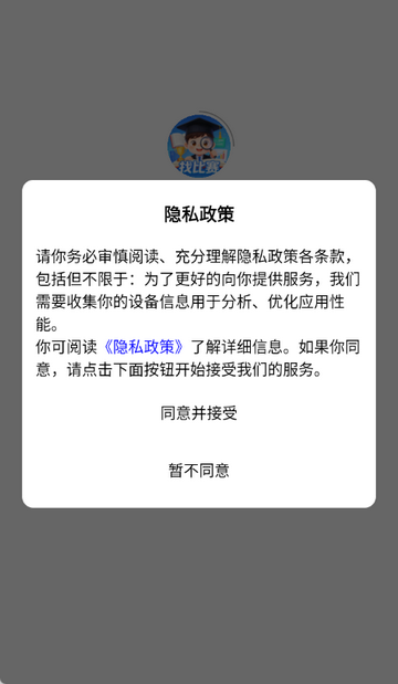 1、打开找比赛app,点击同意隐私政策