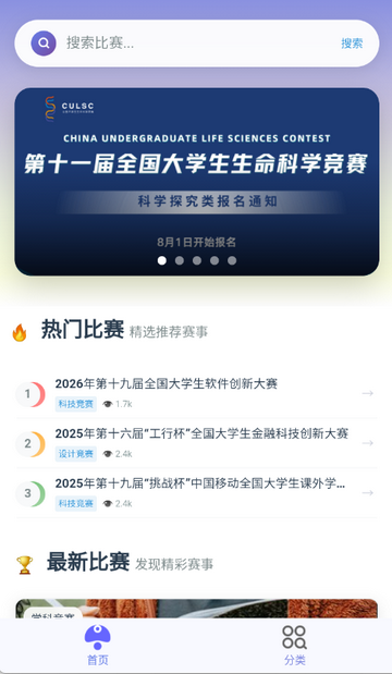 编辑点评:这是一款大学生权威比赛信息平台,可以在上面查找各种比赛信息等