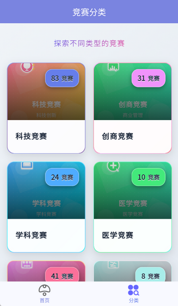3、点击分类,可查找不同类型的竞赛等
