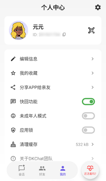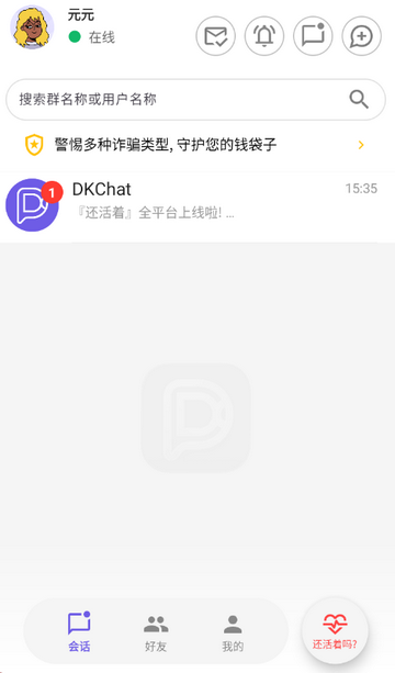 1、打开DKChat软件进入会话页面,点击右下角还活着吗
