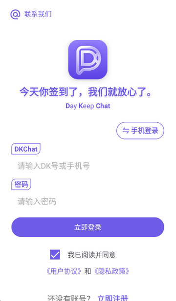 1、打开DKChat软件,点击同意隐私政策