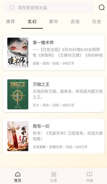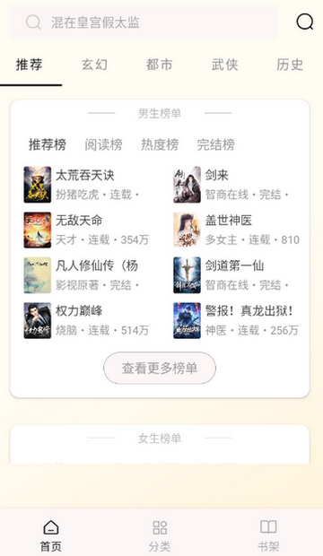 2、点击分类,可查看各种类型的书,更好找到你想要的书