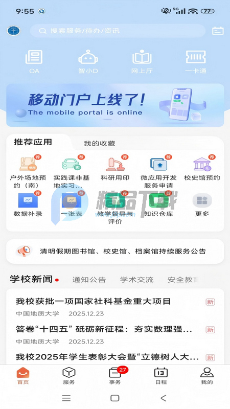 1. 数智地大App即日起进入试运行阶段,将优先面向全体教职工开放,重点支持公文办理、校级用印等事务。