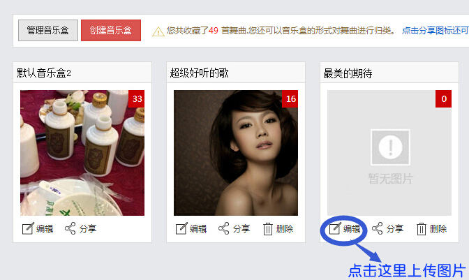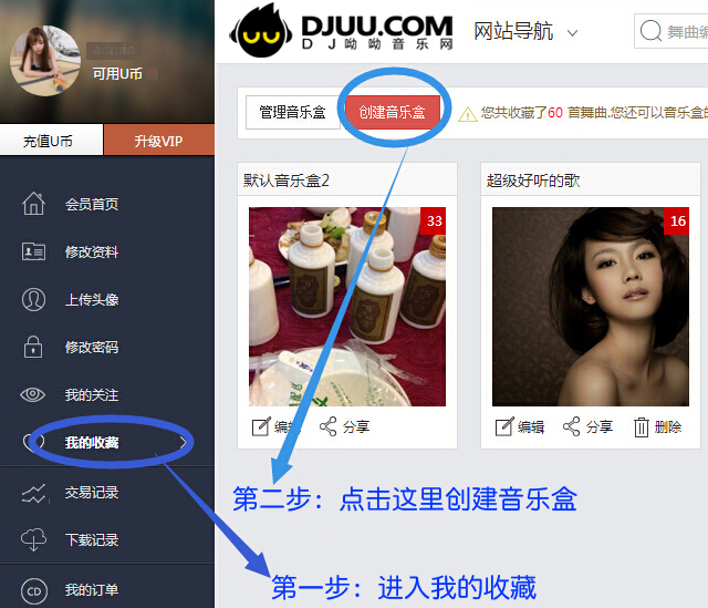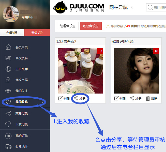 方法二:进入会员中心--> 我的收藏--->创建新的音乐盒再分享