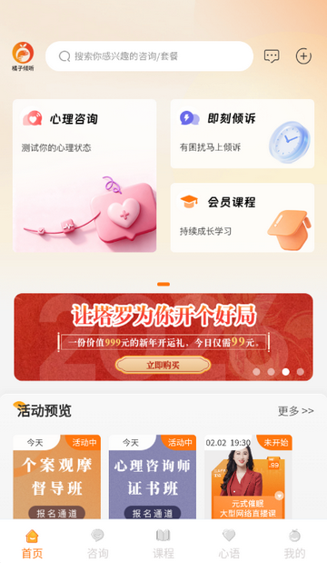 2、线上线下联动,倾听、咨询、学习一站式服务,无需切换平台即可满足全周期心理需求。