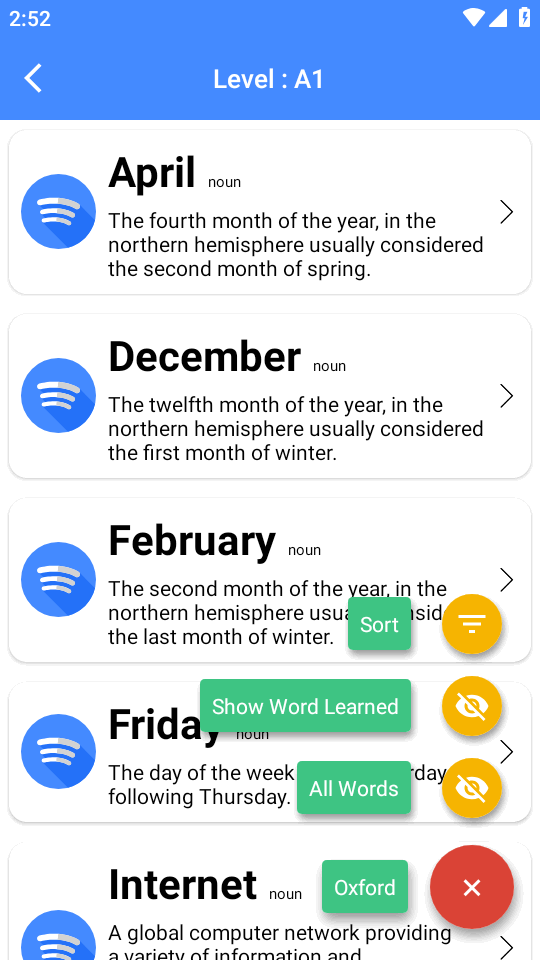 1、包含了广泛的单词数据库:访问超过 3400 个牛津单词的综合列表。