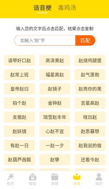 5、点击斗文,可以AI帮你生成谐音梗、毒鸡汤等