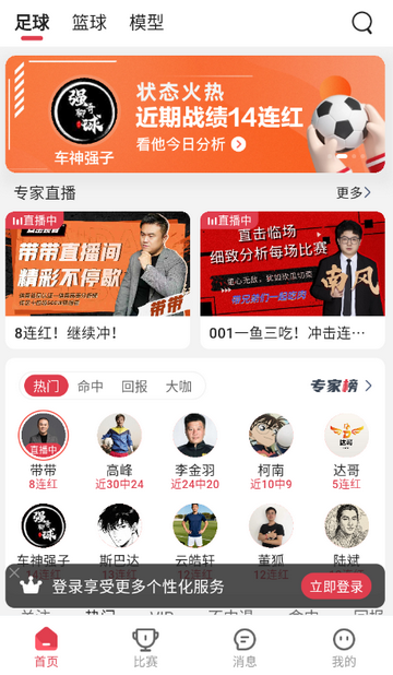 红球会是一款集足球篮球情报分析、即时比分、数据模型等功能为一体的赛事比分预测分析APP,专家解读、情报干货、实时赛况等核心内容,助力球迷全面了解赛事信息、精准把握赛事走向,同时搭建球迷交流桥梁,丰富观赛与赛事分析体验。