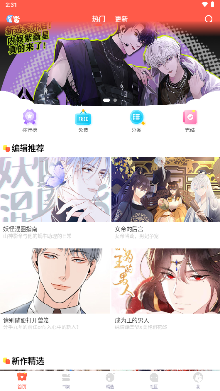 一款专注于免费追漫的阅读神器,汇聚多题材精品漫画资源,画质清晰,加载流畅,全程无广告干扰,支持书架管理,追漫体验更加轻松。