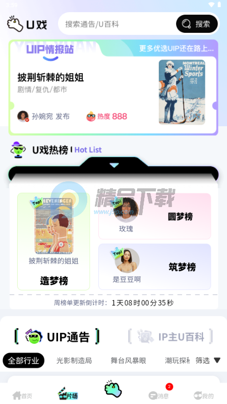 U 戏 APP 是一款深耕影视娱乐行业的垂直领域社交平台,聚焦行业人才对接、粉丝艺人互动与创作者内容变现三大核心需求,为影视行业打造了专业的互联网匹配解决方案,打通了行业资源与社交变现的链路。平台围绕影视、娱乐项目搭建社交互动媒介。