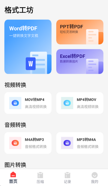 格式工坊是一款专注文件格式转换的实用工具类APP,致力于帮助用户高效解决各类格式文件转换难题。它几乎支持全格式视频、音频、图片及文档的一键转换,搭配一键分享保存、文件压缩与转换记录查询功能,可全面满足用户日常工作与生活中的所有格式转换需求,简化文件处理流程,提升效率。