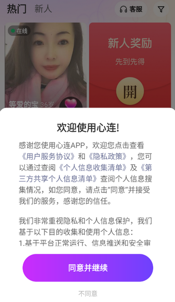 心连是一款专注兴趣交友的社交类APP,基于用户的交友兴趣进行精准匹配,为用户推荐感兴趣的人,助力用户快速找到能进行深度社交的朋友,精心为用户挑选志同道合的伙伴,搭建安全、纯粹的兴趣社交平台,丰富用户社交生活,满足用户深度交友的需求。