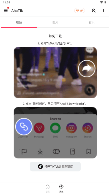 自动下载分享到应用时的TikTok链接