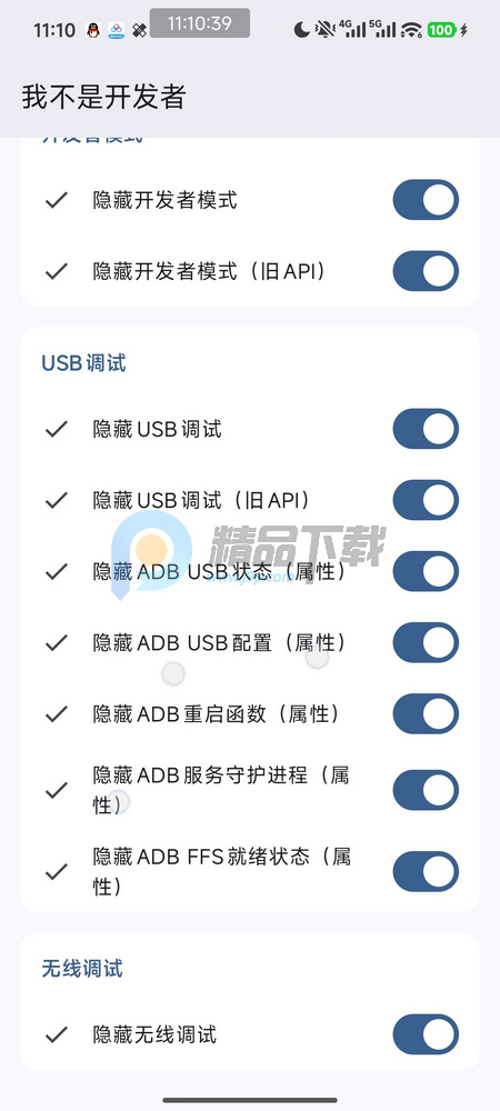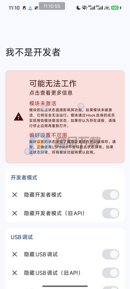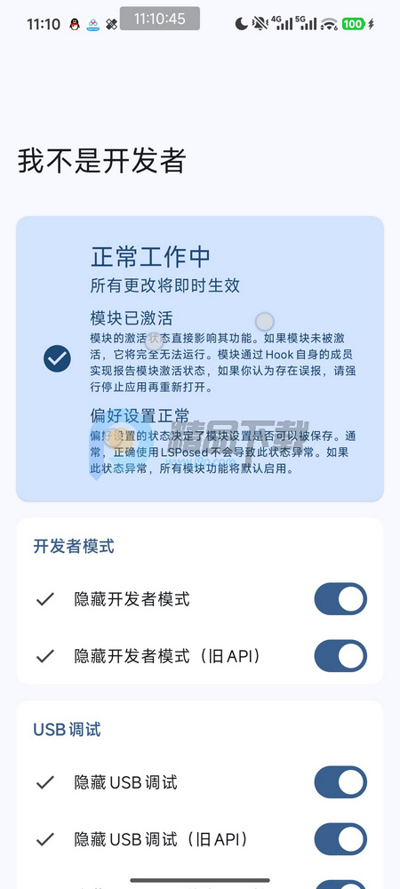 我不是开发者是一款模块工具,可查看隐藏开发者模式,USB调试以及无线调试功能,主要是搭配lsposed模块一起使用的,需要root手机,当然用shizuku打开无线调试也可以使用,需要有一定的玩机水准才可以使用此软件。
