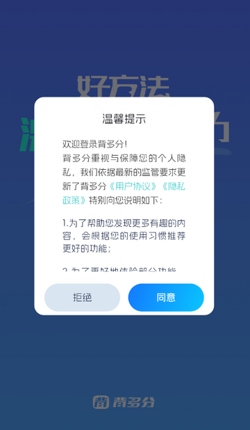 1、打开背多分app,点击同意隐私政策