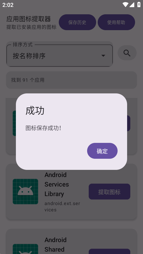 提取完成后,图标自动保存至设备默认文件夹,可在应用内查看保存路径。