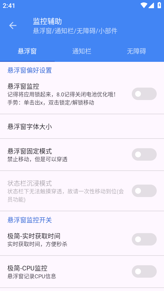 6、如监控辅助,可以管理悬浮窗,通知栏和无障碍等内容。