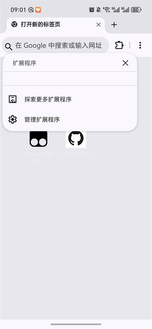 4、在首页点扩展按钮可以快速搜索及管理浏览器扩展。