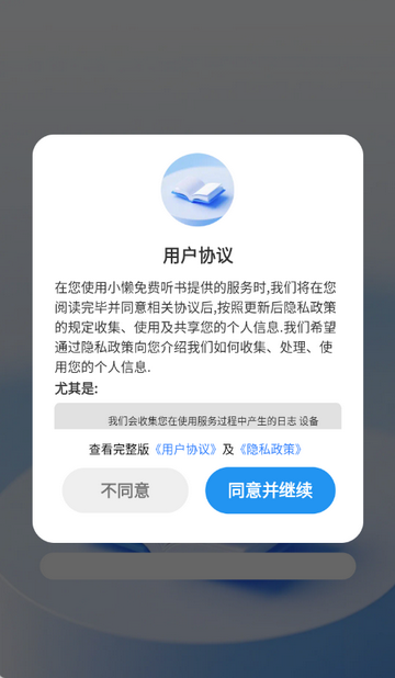 1、打开小懒免费听书app,点击同意隐私政策