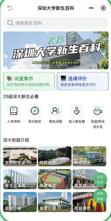 3、新生百科专属服务,精准解决新生入学适应难题,助力快速融入。