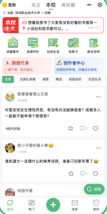 3、所有功能均适配校园场景,闲置交易、跑腿代拿聚焦校园内,便捷高效。