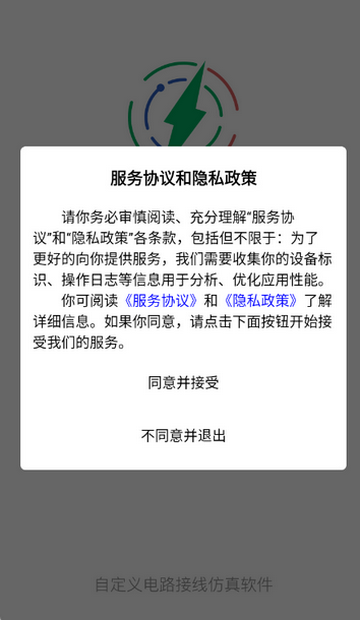 1、打开电工仿真接线助手app,点击同意隐私政策