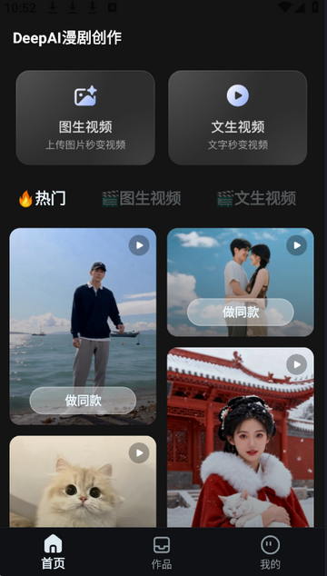 1、打开DeepAI漫剧创作app,点击文生视频