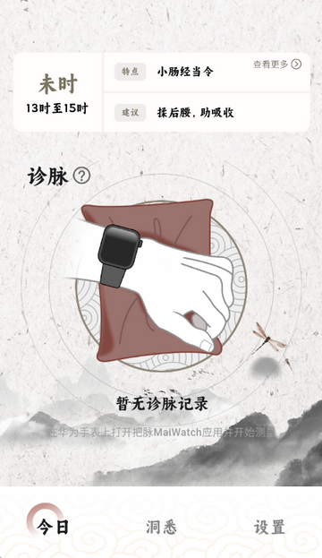 2、进入软件今日页面,带上华为手表即可开始诊脉