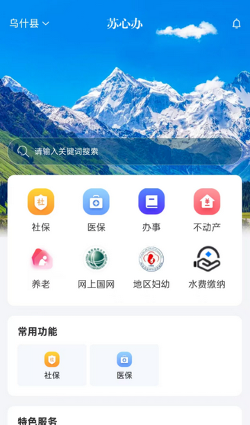 1、打开苏心办app,进入软件首页,可使用主页面查询社保医保等功能