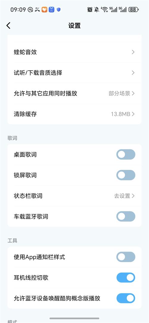 酷狗概念版内置功能菜单
