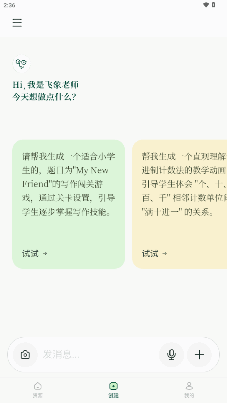 文字输入:输入一句教学想法,生成可交互的教学动画