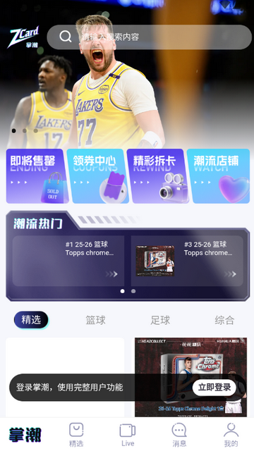 掌潮是专为球星卡爱好者打造的一站式收藏交易平台,核心聚合正版卡盒选购、实时直播拆卡、安全支付交易等核心功能,为球星卡藏家搭建专属交流交易场景,助力每一位藏家轻松解锁收藏乐趣,结交同好伙伴,满足球星卡收藏、选购、交易、社交的全流程核心需求。
