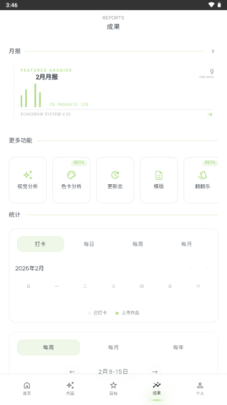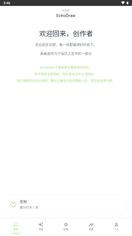 随时可以停。已经上传的内容、目标、记录不会被删。EchoDraw开发的初衷就是希望为你保留你努力过的痕迹,即使暂时放下,等你回来的时候也不会感到从零开始的迷茫。