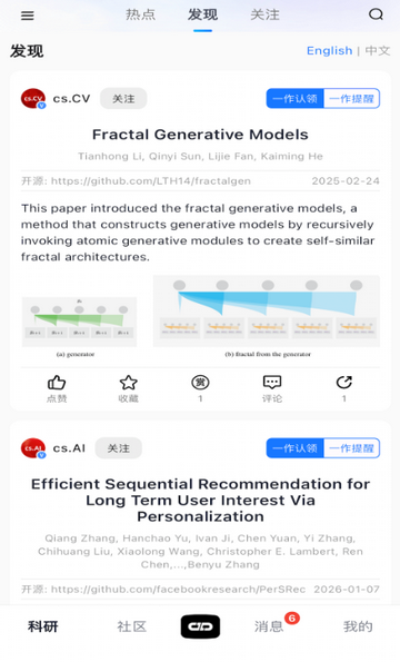 4、支持一作认领、点赞、收藏、评论、转发等形式,交流人工智能研究成果。