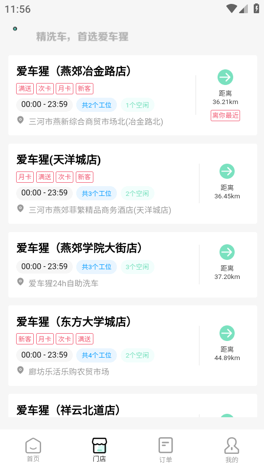 4、进入门店可以查看信息,开始洗车。