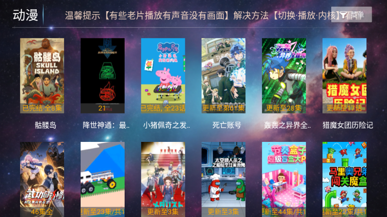 2、点击上方的电视剧、动漫等选项,可以进入对应的分区。